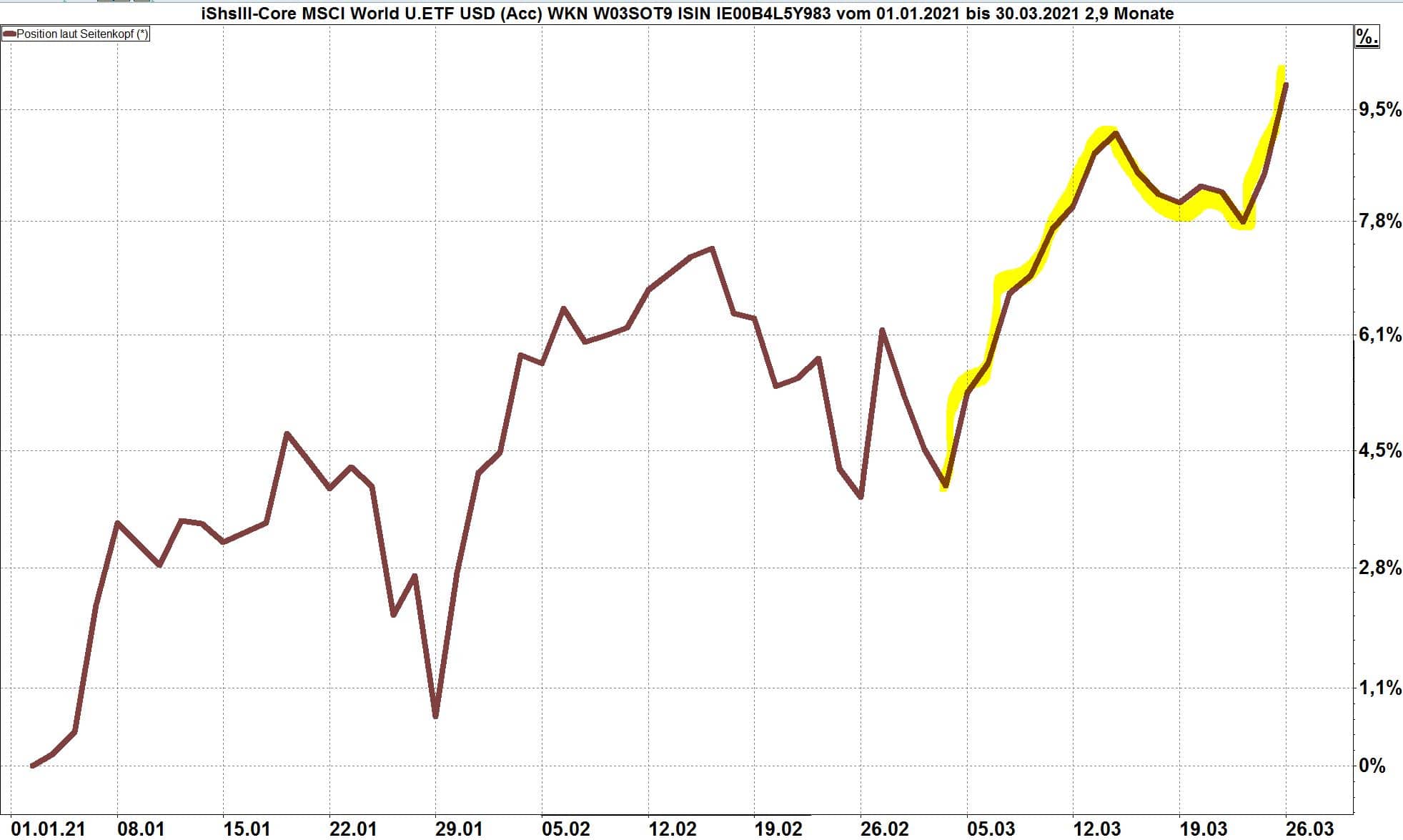 Weltaktienindex vom 1.1. bis 26.03.2021 (März 2021 gelb hervorgehoben)