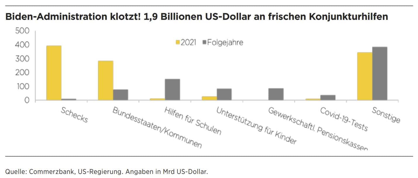 Beispiel USA: 1,9 Billionen USD Konjunkturhilfen