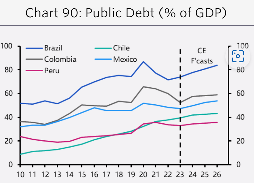 Vor allem Brasilien trägt eine hohe Schuldenlast, die 2025 und 2026 noch weiter steigen wird.