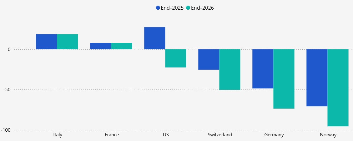 In Deutschland dagegen könnte der Zinssatz für 10-jährige Staatsanleihen zurückgehen, noch mehr in Norwegen.