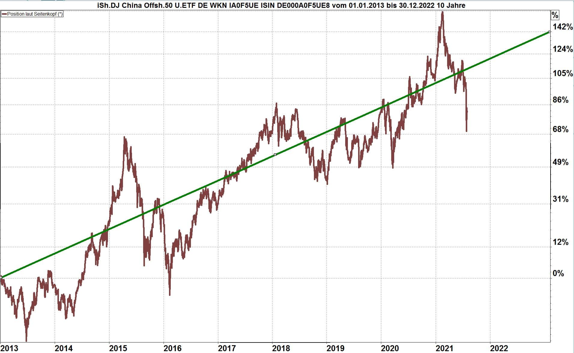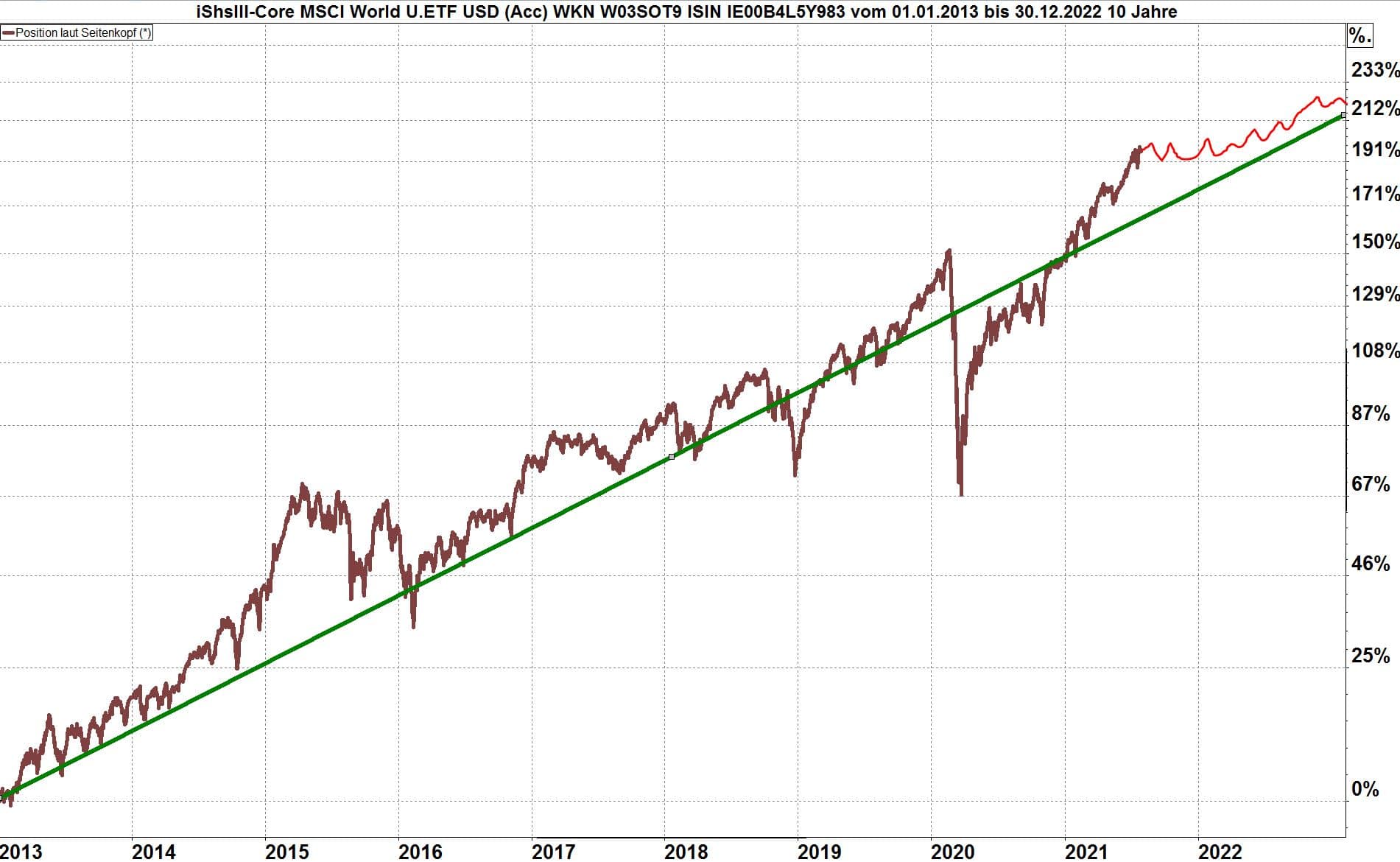 Dehnen wir den Betrachtungszeitraum auf 10 Jahre aus. Wir starten zum 1.1.2013 und denken weiter bis Ende 2022. Die folgende Grafik zeigt
