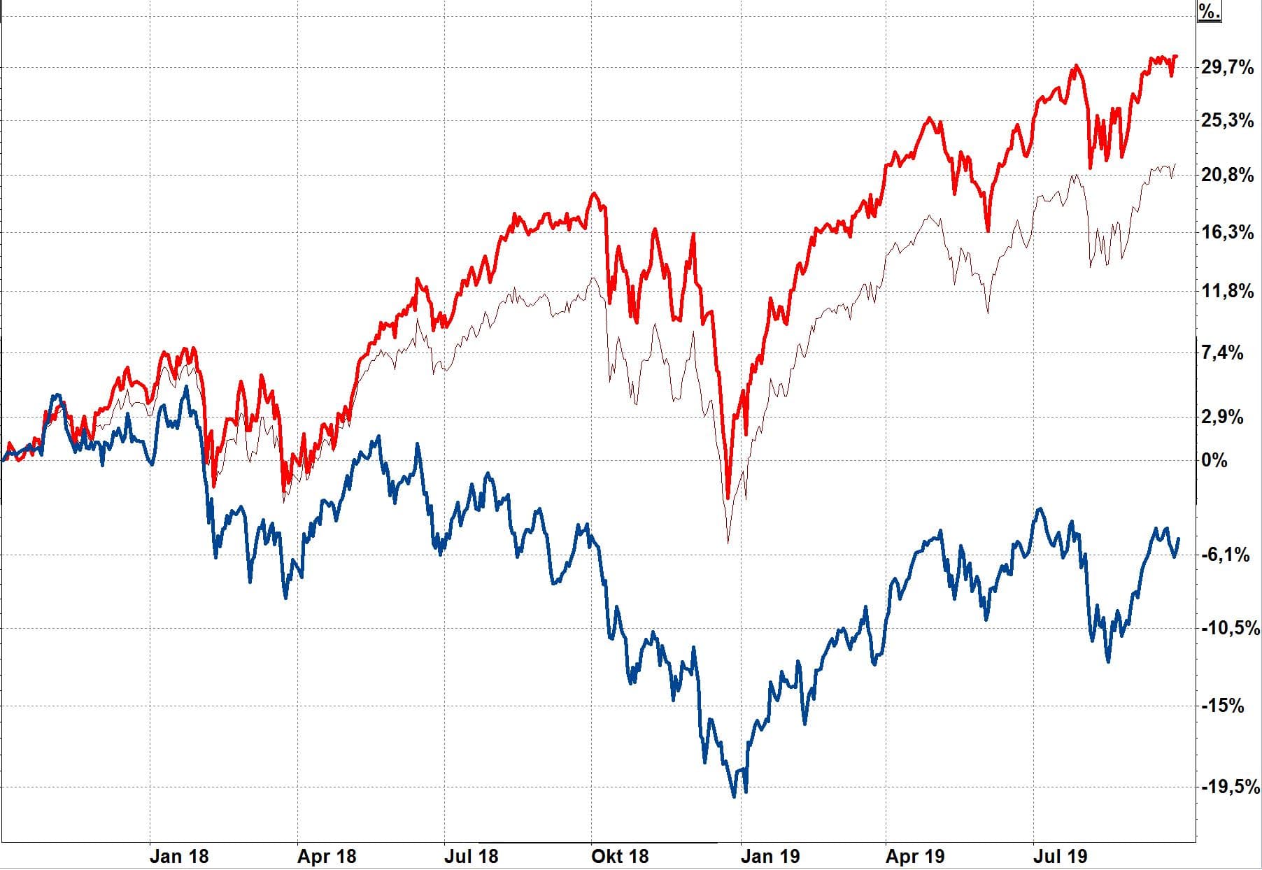 - Rot: S&P 500 (die fünfhundert größten Werte in den USA)