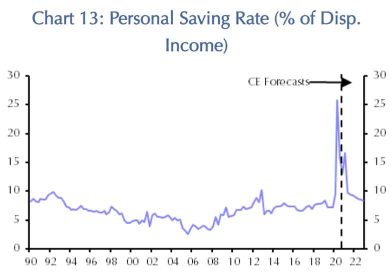 Dies resultiert auch aus der extrem großzügigen staatlichen Unterstützung der Arbeitslosen. Viele US-Bürger erhielten wöchentlich einen zusätzlichen Scheck über 600 USD, was in Millionen Haushalten zu einem höheren Einkommen führte als vorher aus dem Arbeitseinkommen.