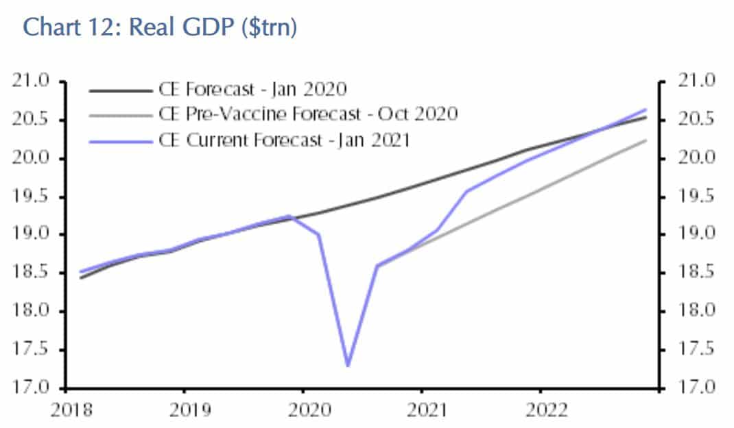 Mit der Umsetzung des Impfprogramms werden die USA schon früh im Jahr 2022 den vor Ausbruch der Pandemie erwarteten Wachstumspfad erreichen können.