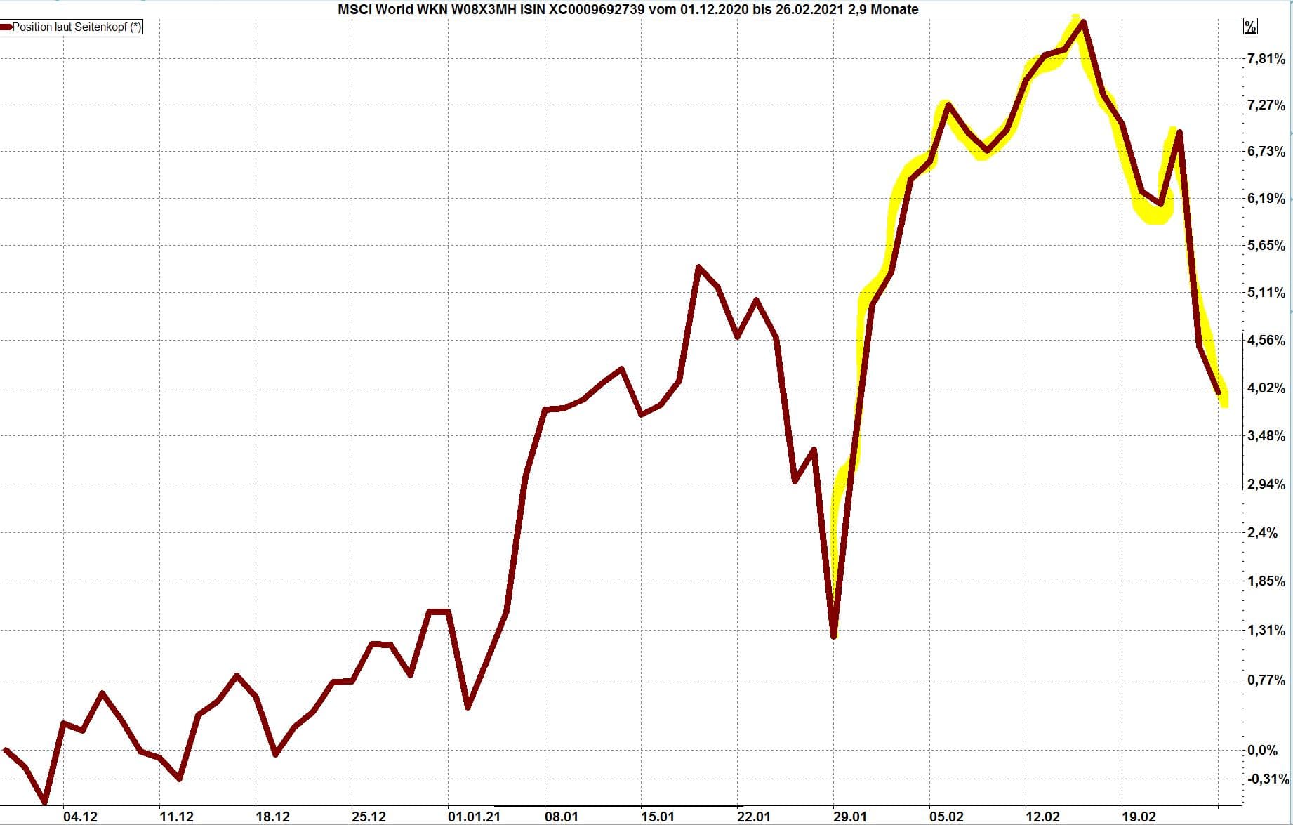 Grafik: Weltaktienindex vom 1.12.2020 bis 26.2.2021 (gelb hervorgehoben: Februar 2021)