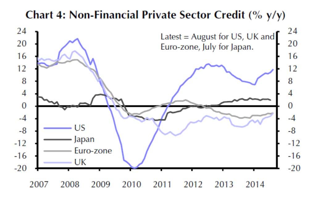 Die Ausleihungen an Unternehmen in der Eurozone und in Japan sind immer noch geringer als gewünscht.