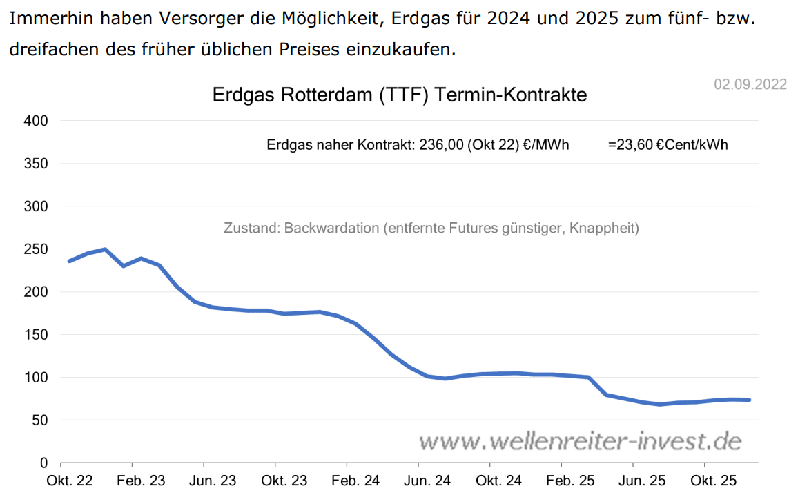 Wenn die Verfügbarkeit von Gas in Deutschland und dem weiteren Europa wieder steigt, wird auch die allgemeine preistreibende Wirkung, die zu einem großen Teil aus den derzeit extrem hohen Bezugskosten für Gas resultiert, wieder nachlassen.