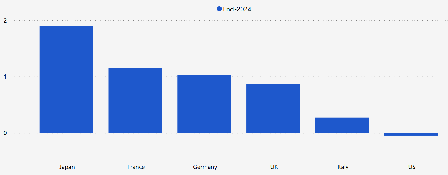 Auch bis zum Ende des Jahres 2025 sieht CE die US-Börsen vorne. Der S&P 500 könnte bis dorthin – ausgehend vom Stand per 12.11.2024 – um über 15 % zulegen. Auch für die weiteren großen Industrieländer (Deutschland, UK, Frankreich und auch Japan) und jetzt als Schlusslicht Italien könnte 2025 ein gutes Aktienjahr werden.