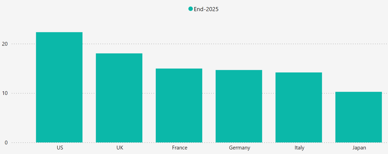 Auch 12 Monate weiter, bis zum Ende des Jahres 2025, sieht CE die US-Börsen vorne. Der S&P 500 könnte bis dorthin – ausgehend vom Stand per 11.10.2024 – um über 20 % zulegen. Auch bei den weiteren großen Industrieländern (UK, Frankreich, Italien, Deutschland und jetzt Japan als Schlusslicht) könnte 2025 ein gutes Aktienjahr werden.