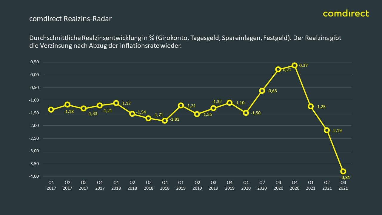 Wenn dann zusätzlich noch die Inflationsrate steigt, erhöht sich die jährliche Enteignung weiter um den Kaufkraftverlust des Geldes. 3 % vorenthaltener Zins plus auf mittlere Sicht 2 % Kaufkraftverlust addieren sich auf eine jährliche Enteignung von 5 % auf das Vermögen in „Geld“.