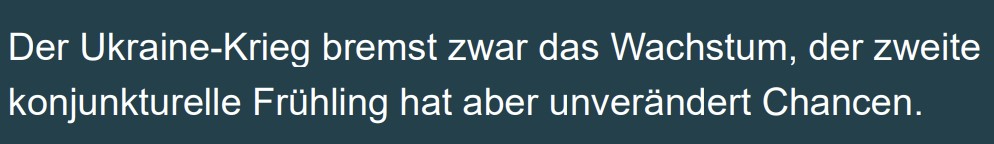 Das Wirtschaftswachstum wird alleine schon wegen der Folgen des Krieges in der Ukraine zurückgehen. Europa wird sich um die Unterbringung von Millionen Menschen, die um ihr Leben fliehen, kümmern müssen. Energie wird knapp und teuer. Lieferketten werden gestört oder ganz unterbrochen. In Europa könnte fehlende Energie in zahlreichen Unternehmen zu einem vollständigen Produktionsstopp führen.
