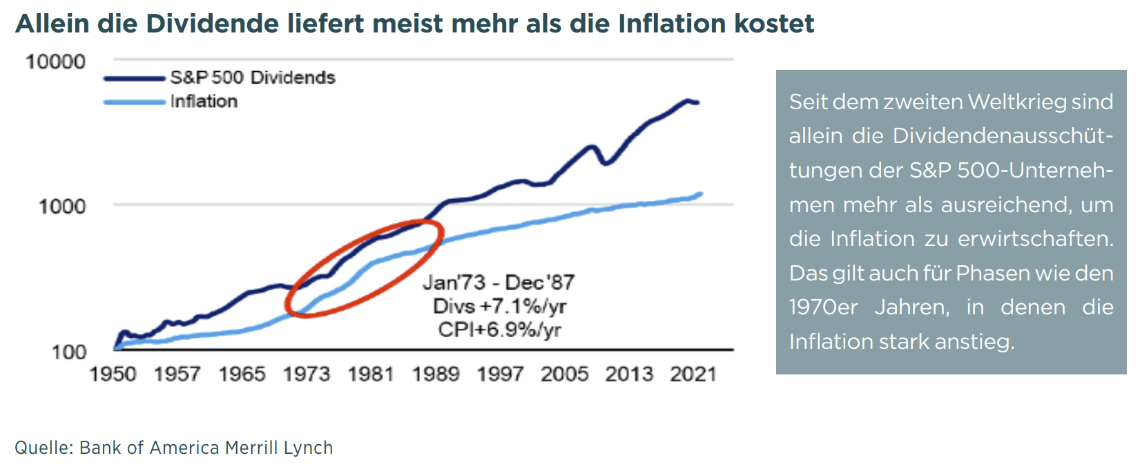 Für den Euroraum wird die EZB (Europäische Zentralbank) den Einlagenzinssatz mit einiger Verzögerung erhöhen. Für 2022 wird dieser Zinssatz bei Minus 0,5 % verbleiben. Erst 2023 ist mit einer Erhöhung in kleinen Trippelschritten bis auf 0,00 % zu rechnen. Damit können die Unternehmen im Euroraum noch über ein Jahr mit sehr günstigen Finanzierungsbedingungen rechnen. Auch Aktien-Investments mit Dividendenerträgen rentieren besser als Anlagen in „Geld“.