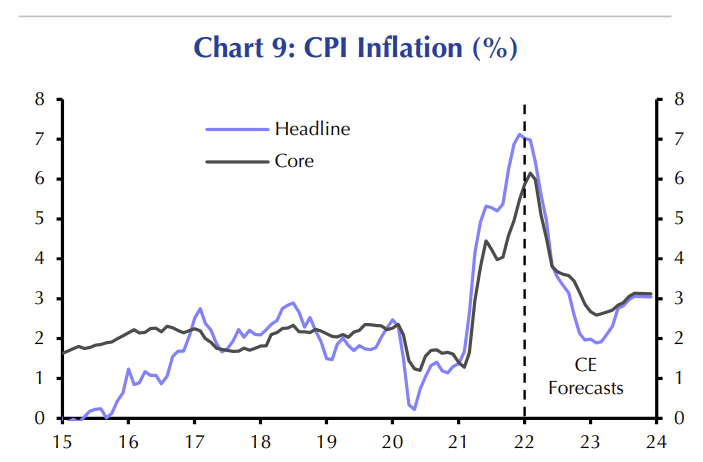 Die Commerzbank veröffentlicht die Prognosen auf Quartalsbasis und erwartet für die ersten beiden Quartale noch eine hohe Inflationsrate, insbesondere in den USA. Ab dem dritten Quartal sollte die Inflationsrate jedoch wieder zurückgehen. Zum Jahresende erwartet die Commerzbank bis auf sehr geringe Abweichungen die gleichen Werte wie der bankenunabhängige Analysedienst Capital Economics.
