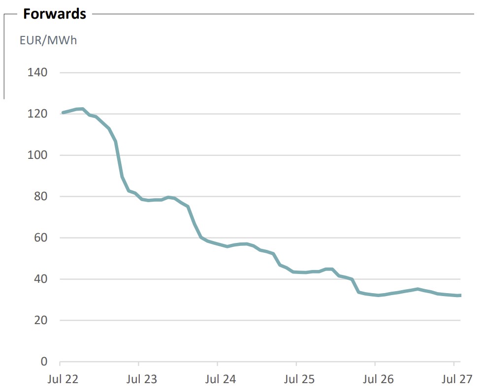 - Lieferung per Juli 2023: 80 Euro per MWh