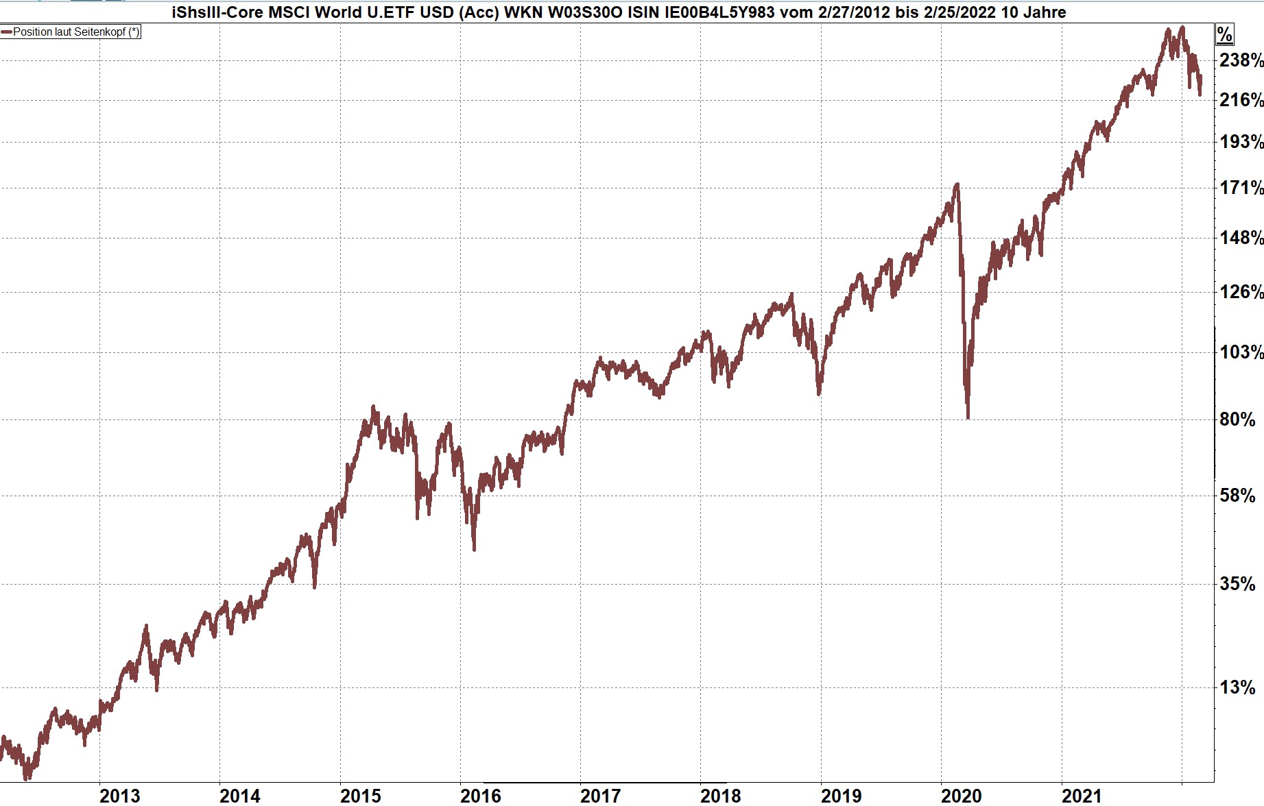 Grafik: Weltaktienindex zehn Jahre bis zum 25.02.2022