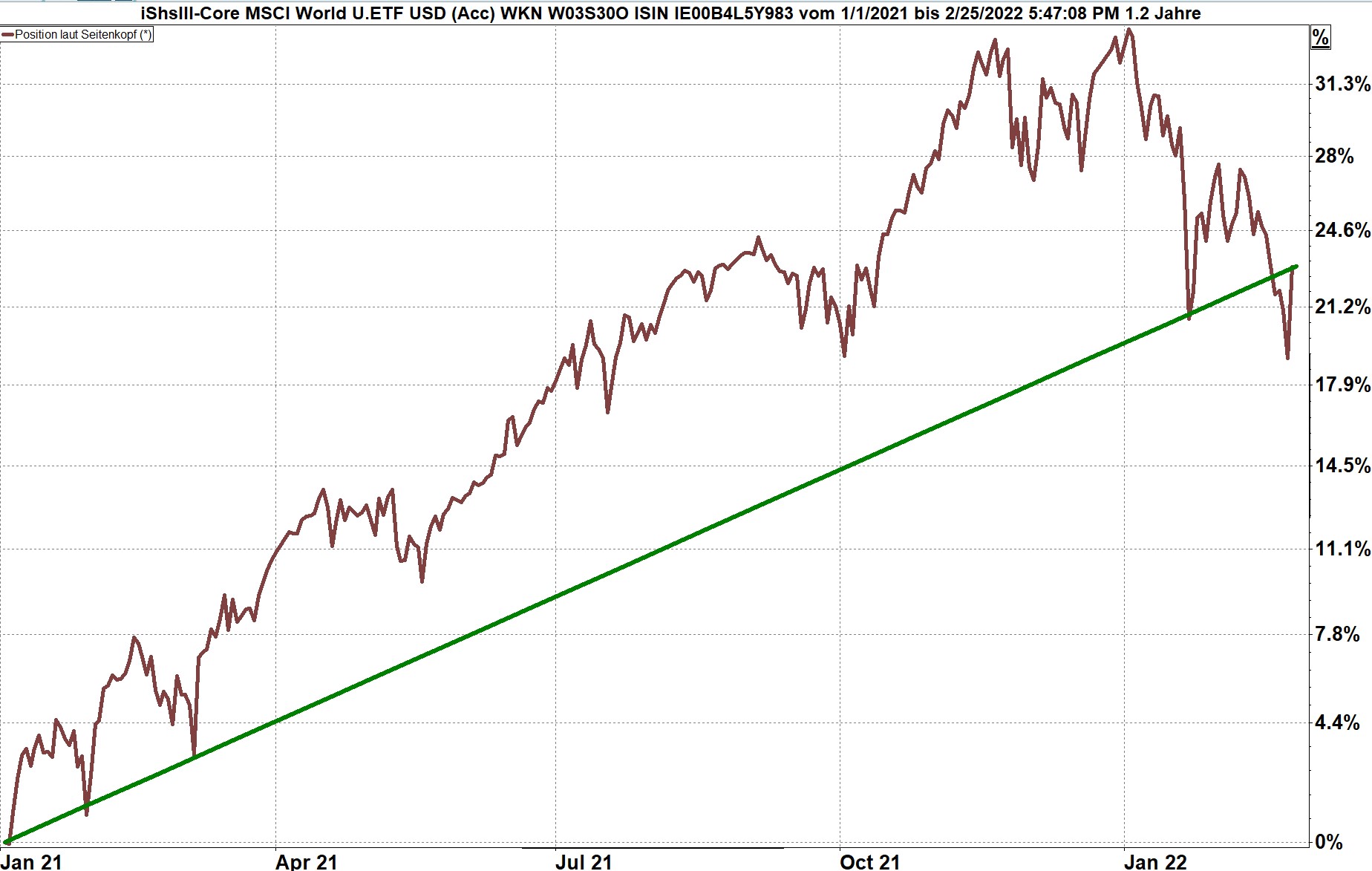 Damit reduzierte sich der Wertzuwachs seit Jahresbeginn 2021 bis 18.2.2022 auf nur noch 23 %.