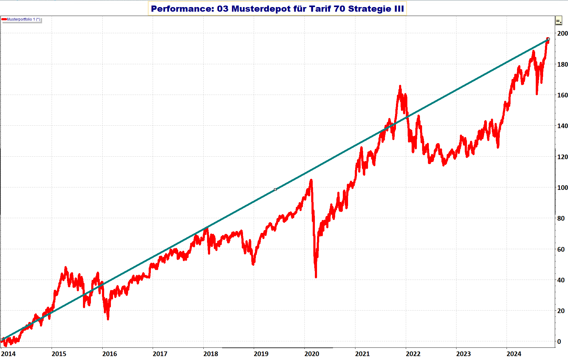Musterportfolio für Tarif 70: 196 % plus, 10,5 % pro Jahr