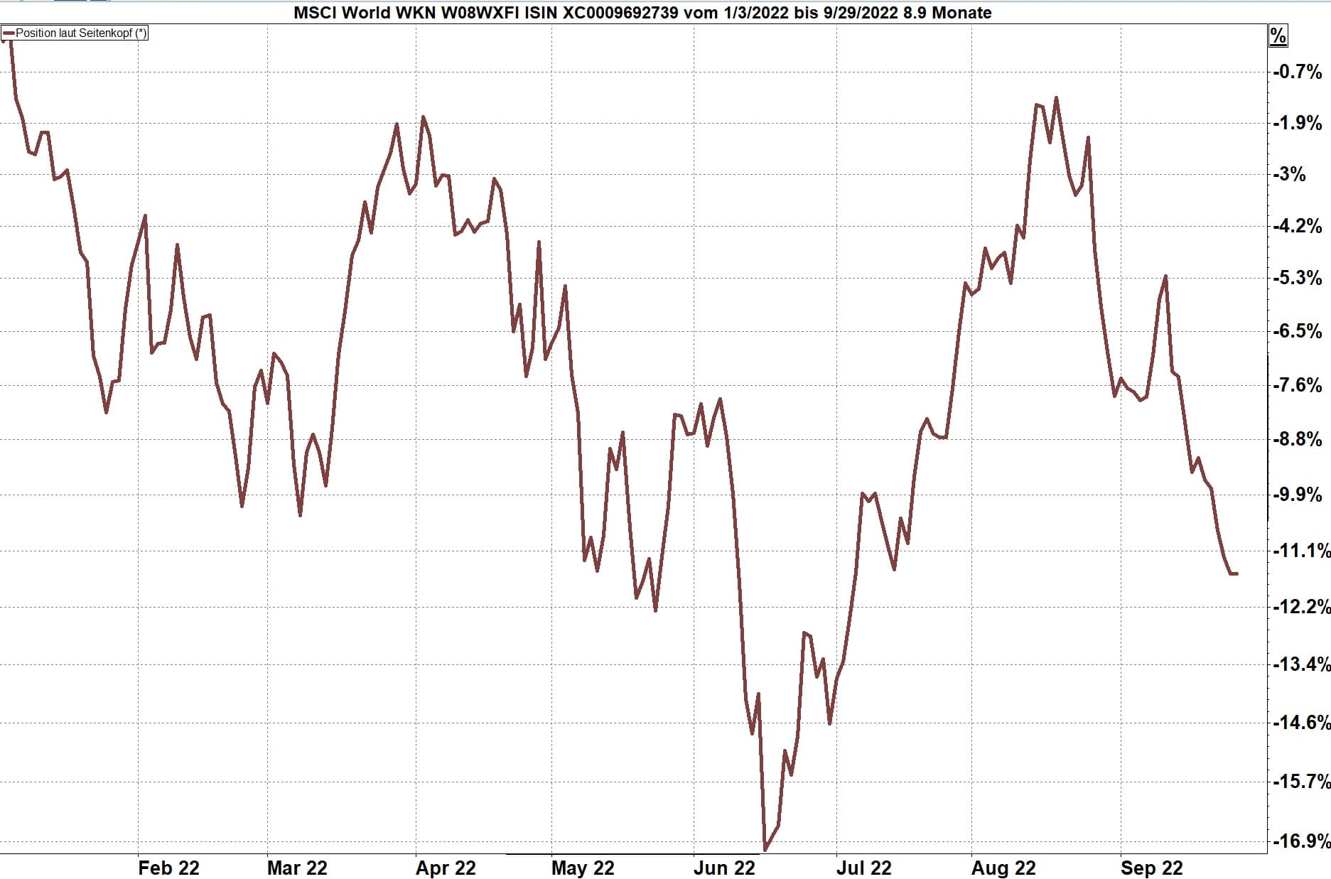 Der Weltaktienindex setzte im September 2022 den Mitte August begonnenen Rückgang mit beschleunigtem Tempo fort.