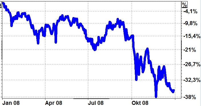 Das Jahr 2008 ist uns noch als das Jahr mit dem massivsten Kurseinbruch seit langem in Erinnerung. Eine weltweite Banken- und Finanzkrise führte zum Zusammenbruch des Anleihemarktes und zum Ausverkauf von Aktien. Auch der S&P 500 verlor über 35 Prozent, das meiste davon in wenigen Wochen ab September 2008, dem Monat, in dem die Lehman-Bank in Insolvenz fiel.